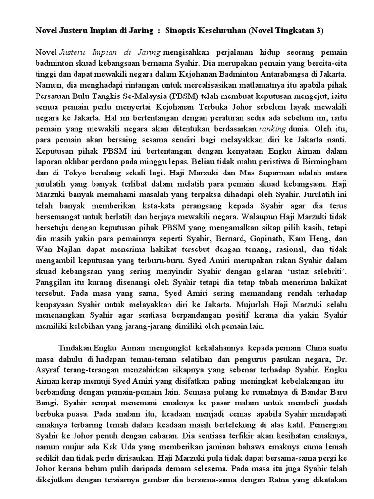 Sinopsis Ringkas Novel Justeru Impian Di Jaring : Komsas Tingkatan 3 Membalik Buku Halaman 1 33 Anyflip